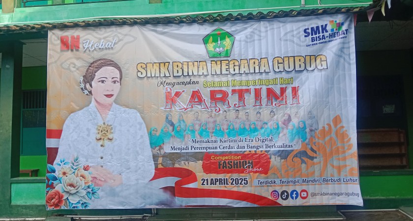 Gubug, 21 April 2025 – SMK Bina Negara Gubug merayakan Hari Kartini dengan penuh semangat dan kreativitas pada Senin, 21 April 2025. Mengusung tema “Kartini Masa Kini: Cerdas, Mandiri, dan Berkarya”, peringatan ini menjadi ajang untuk menggugah semangat emansipasi di kalangan generasi muda, khususnya para siswi yang tengah menempuh pendidikan kejuruan.